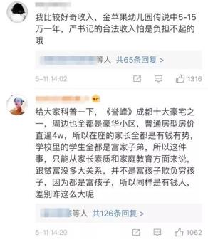 关于严春风一家更多的爆料扑面而来:严书记女儿就读的”金苹果“幼儿园属于贵族幼儿园,一年的学费要5万到15万;严书记的前妻,脾气很大的李向阳在成都市高档小区誉丰、华润翡翠城都有房产……