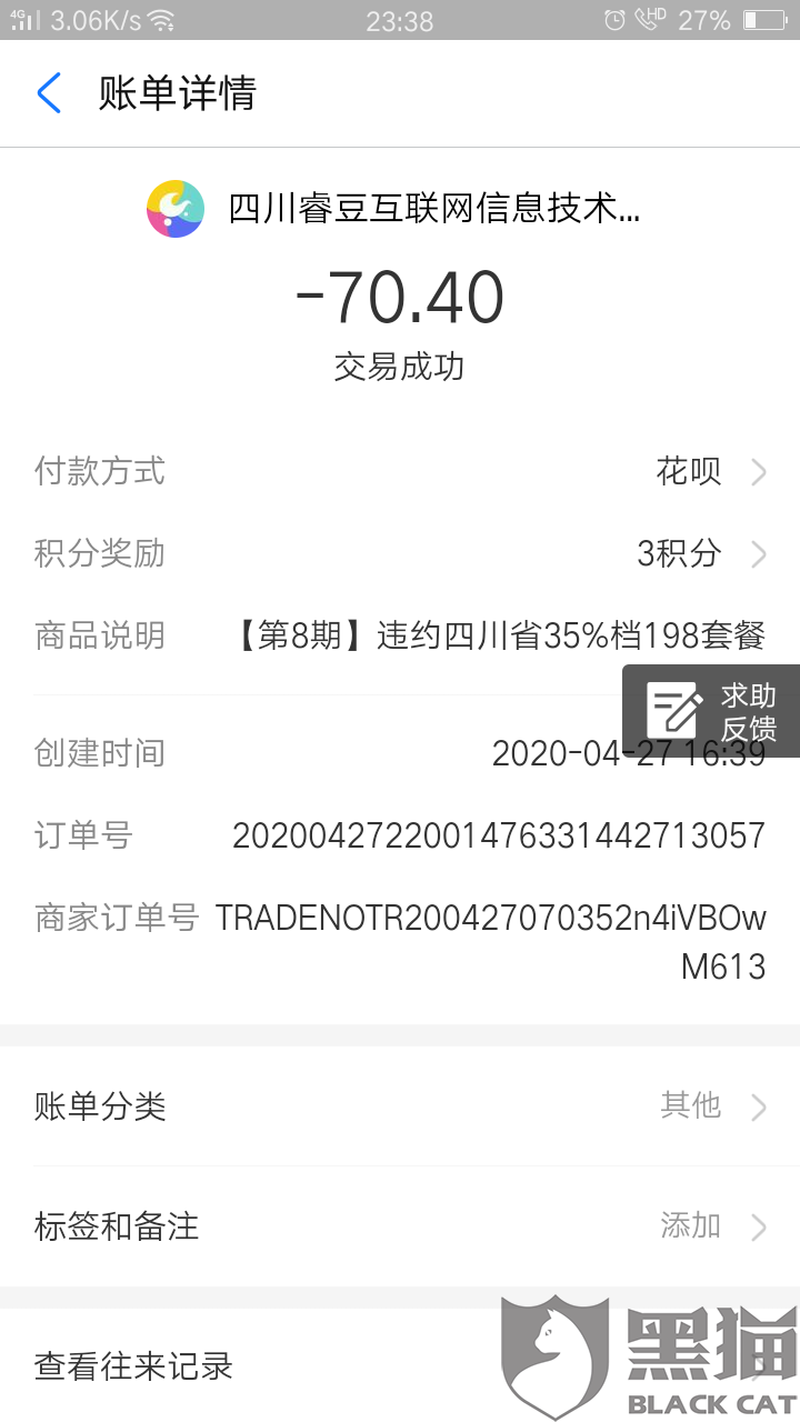 消费者“左迁客”在4月29日向黑猫投诉平台反映:“大概是在2019年10月左右,参加了广汉市南兴镇某一移动营业厅的活动,当时对方说的是,只要保持宽带等级不变,就送一部手机,结果到今年三月,以及四月,说什么因为违规,自动扣款给四川睿豆互联网,每次都是70.40元,我实在不明白这个扣费到底是因为什么?到底什么地方就违规了?霸王条款也不是这样的吧?”