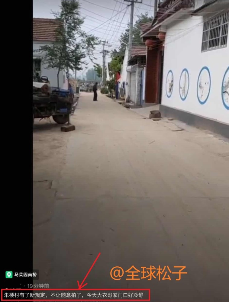 5月6日,有网友在网上发布了一段视频,并配文称“朱楼村有了新规定,不让随意拍了,今天大衣哥家门口好冷清”。