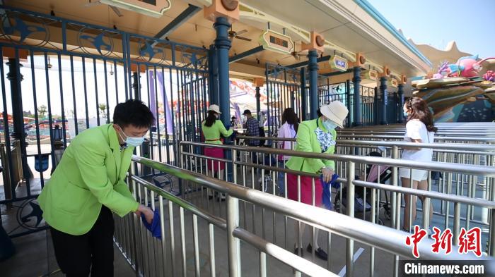 上海海昌海洋公园营销部长郭欣欣介绍说,在公园内乘坐游乐设备时,工作人员会以家庭为单位对游客进行间隔乘坐,同时也会进行针对游乐设备的一客一消毒的举措,“园区也会全天候针对公园内以及商店、餐厅实行定时定点的杀菌消毒,工作人员也会引导游客以家庭为单位进行1米5以上的这样一个安全距离的间隔,以保证游客的安全游玩环境”。(完)