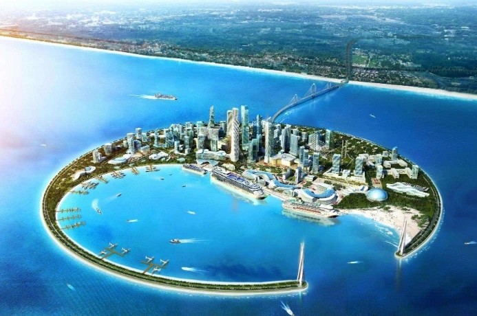 而这个岛屿之所以会存在,是由于人们填海造陆得来的。其岛屿整体呈现出一个太极八卦状的图案,并且岛上的交通非常的发达。除此之外它还是一个高端的旅游生态区,将会有很多世界各国的游客前来游玩。