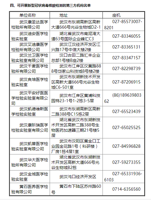 湖北省曾公布了一批可开展新型冠状病毒核酸检测的第三方检测机构名单。从名单可以看出,在汉的检测机构有12家。