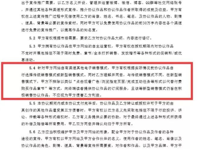 最新版的阅文集团写作合同书条款,
