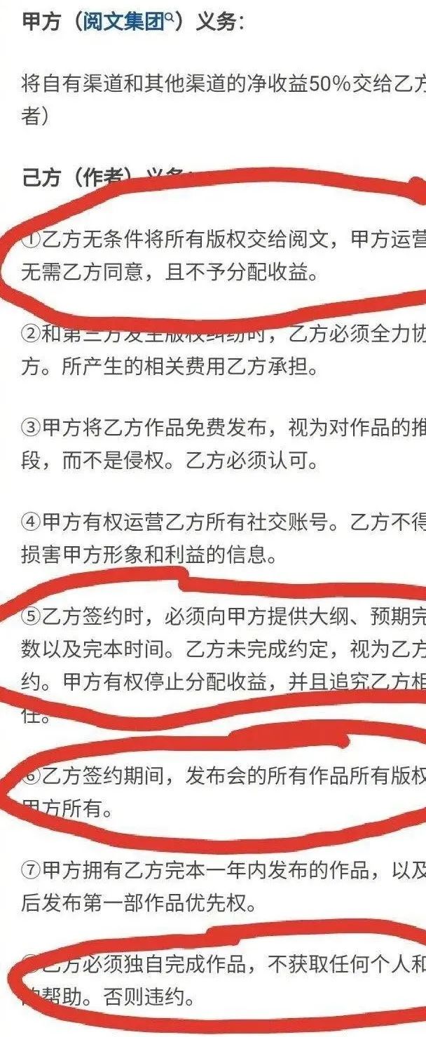 导火索是作者们认为阅文集团在新合同中定下了“霸王条款”——一方面抹杀了雇佣关系,强调作者和平台之间只是委托关系,作者不再拥有版权的支配权,作者变枪手。另一方面,作品会在免费阅读等新型阅读平台分发,不再收费后,作者或许会成为流量的附庸。