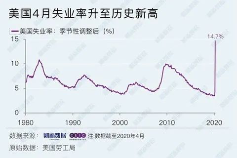 4月美国失业率已经飙升至14.7%,创下了上世纪30年代经济大萧条以来的最高纪录。白宫经济顾问预计,失业率下月将超过20%。