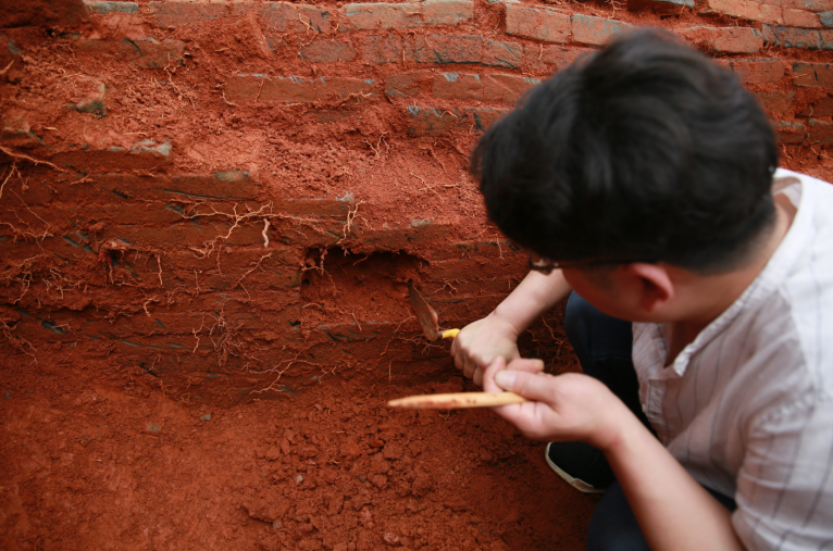▲目前,另外一个保存完整墓室的发掘工作仍在进行。