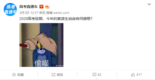 近日,高考直通车在微博发起一个话题,2020高考延期,今年的复读生说说有何感想?