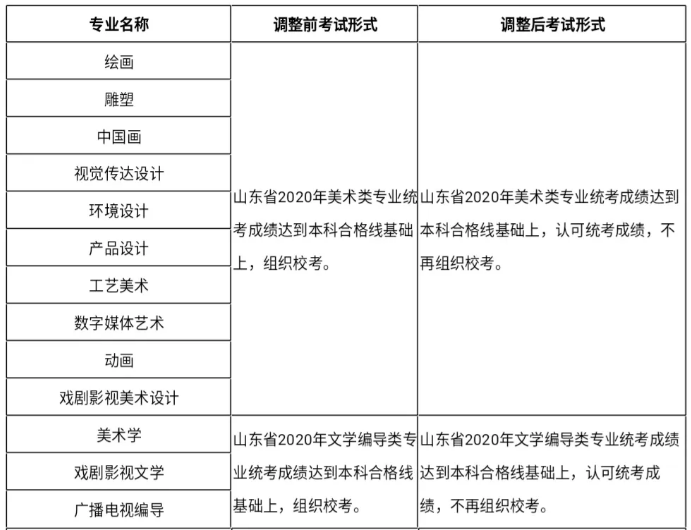 ,考试内容不变,可以继续报名;湖南、广东、山东、河北、安徽、甘肃、宁夏、新疆取消校考,不要求统考合格,安排在各省普通类第二批次,按分省计划招收普通生。
