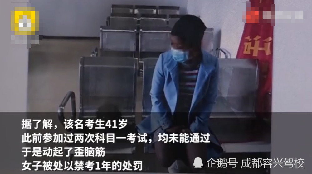 4月13日,在重庆,一名妇女进行科目一考试时,由于头顶闪烁的蓝灯吸引了考官的注意力。