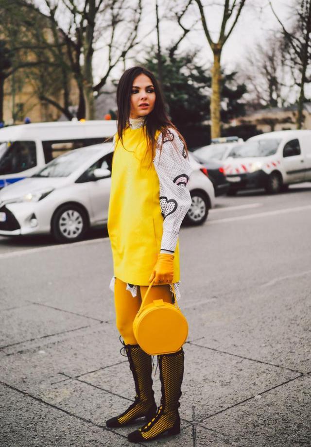 单色的针织背心可能会看起来比较单调,但如果它是亮色调的,大可不必担心这个问题,明亮的色调轻松引人注目,随意搭配一款浅色调的长袖衫即可。下半身可以选择同色调的打底裤,配上一双及膝的渔网靴,再拎上一件精致的小包包,简直就是行走的时尚模板。