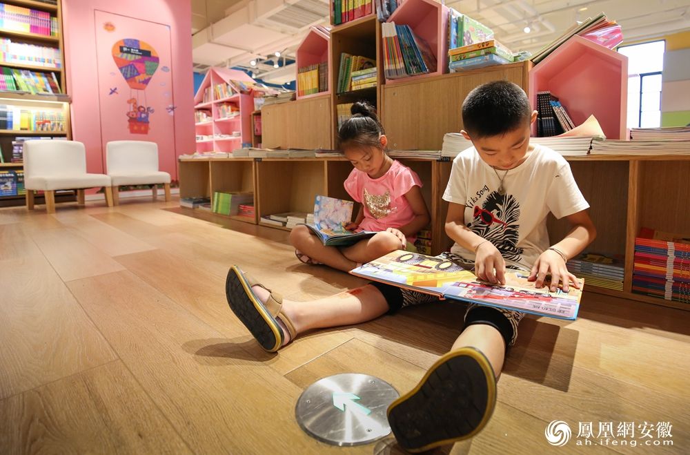 合肥瑶海图书城家长带着孩子阅读,边学边讲解知识,丰富孩子知识。(凤凰网安徽特约摄影师 王牌/摄)