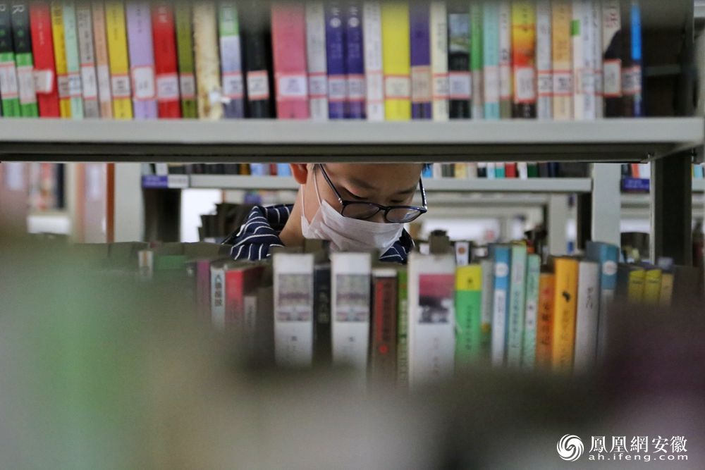 铜陵市枞阳县图书馆、文化馆等公共文化服务场馆在做好疫情防控工作的同时,分阶段、分区域有序恢复开放。读者走进书店享受阅读带来的乐趣。(凤凰网安徽特约摄影师 吴蜀/摄)