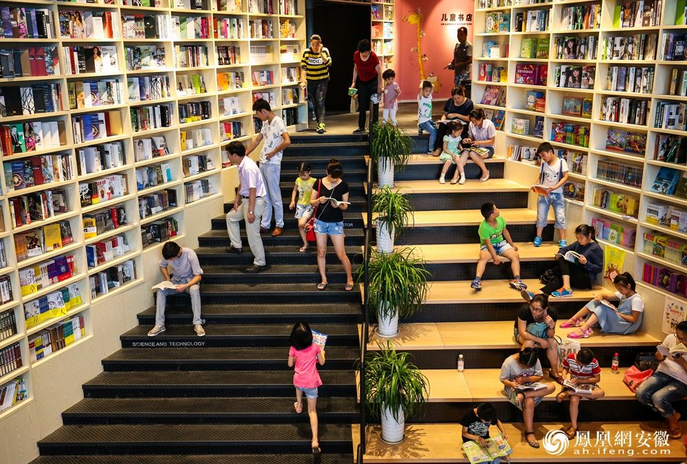铜陵市图书馆的台阶上,坐满了正在阅读的市民。(凤凰网安徽特约摄影师 陈晨/摄)