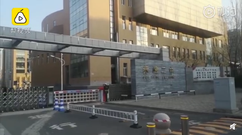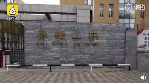 被风吹后的的赤峰二中大门(图片来源:梨视频截图)