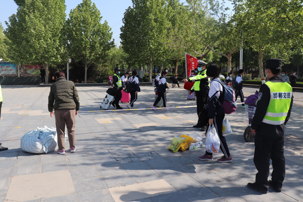4月23日,根据河北省教育厅通知临漳县第一中学高三学子结束了“史上最长寒假”开学复课,邯郸市交巡警支队临漳县大队高度重视,大队领导提前一天与临漳县第一中学负责人进行沟通,根据22日开学演练情况进行研判并制定出高三学子开学方案,提前通过微信家长群、学生QQ群发布开学安全提示,让学生错时报到,最大程度上减少车流、人流聚集。23日早上7时,大队长范炳江与治安维护负责人现场研判调度,安排警力对校园周边道路进行管控,排查安全隐患,在学校门口对车辆进行疏导,指挥车辆进入停车场有序停放。执勤民警帮助前来报到的学子搬运行李护送学生安全进入校园,临漳交警多措并举为高三学子开学复课保驾护航。