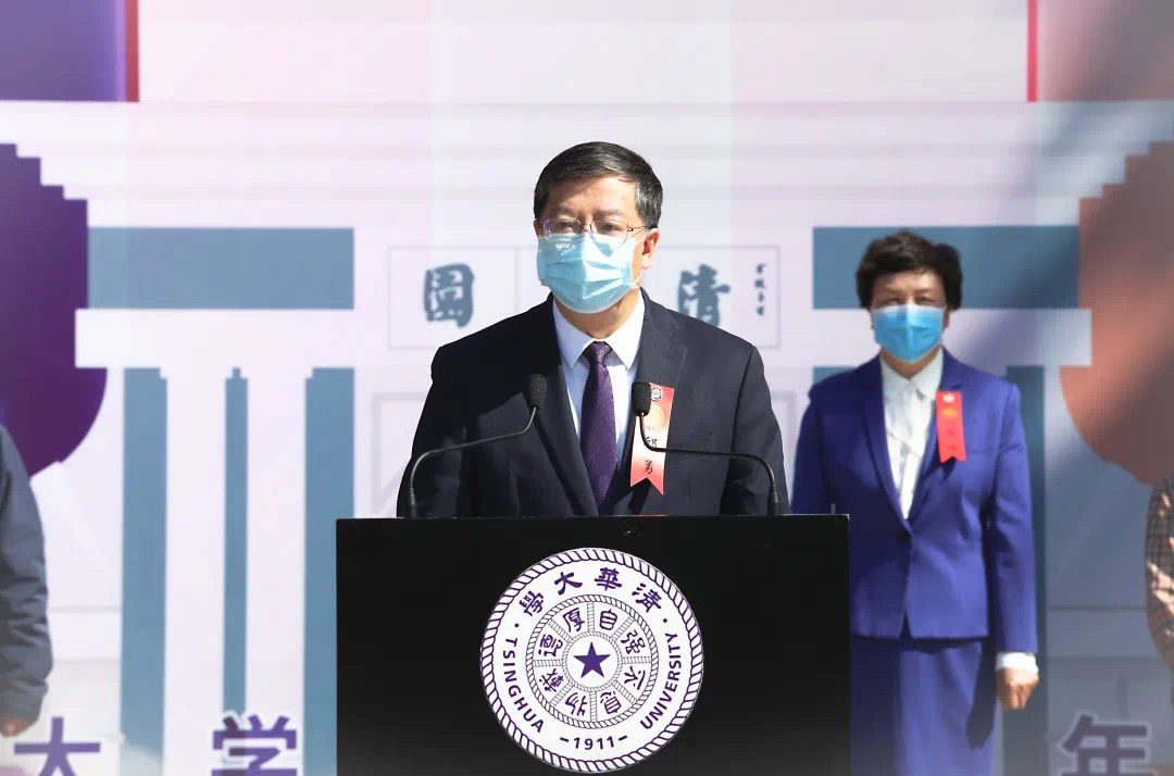 清华大学校长邱勇在校庆活动上致辞。 图源:清华大学