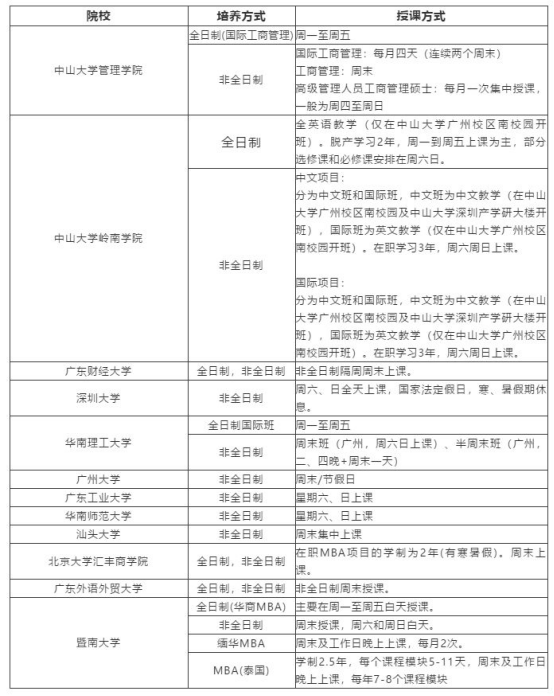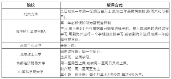 各个学校的MBA对应何种上课方式?