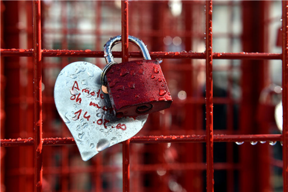 葡萄牙里斯本罗西奥广场上的爱情同心锁 张立云/摄