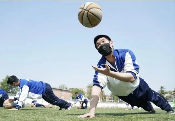 4月27日,北京丰台第二中学的学生在上体育课