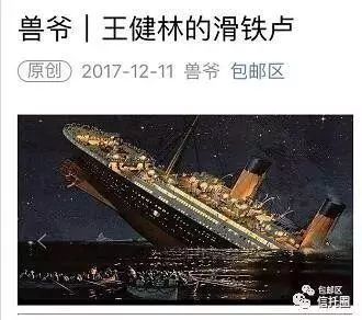 除了2016年7月兽爷《田朴B撩汉往事,世界就这样被走野路子的女人抢走》一文被田朴B告上法庭外,2017年底他发在“包邮区”里的《王健林的滑铁卢》一文,也令王震怒,扬言要报案。