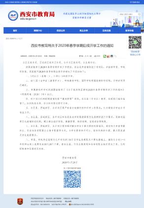 按照陕西省教育厅2020年春季学期开学工作安排,结合西安市疫情防控工作实际,并报请市委、市政府同意,现就西安市2020年春季学期后续开学相关工作安排如下:
