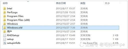 在老毛桃猛虎般的操作之下,罪魁祸首终于浮出水面,原来C盘里竟然躺着一个占用30多G内存的文件夹,名为“Windows.old”的文件!
