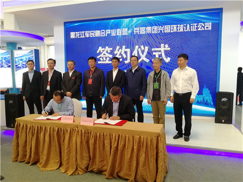 项目签约仪式:黑龙江军民融合产业联盟与兵器集团北京兴国环球认证有限公司现场签署了《战略合作框架协议》,兴国公司成立黑龙江办事处,双方将共同为联盟成员单位及区域企业提供咨询、指导、培训等方面的服务,共同推动产业协同聚集,助力区域经济发展。