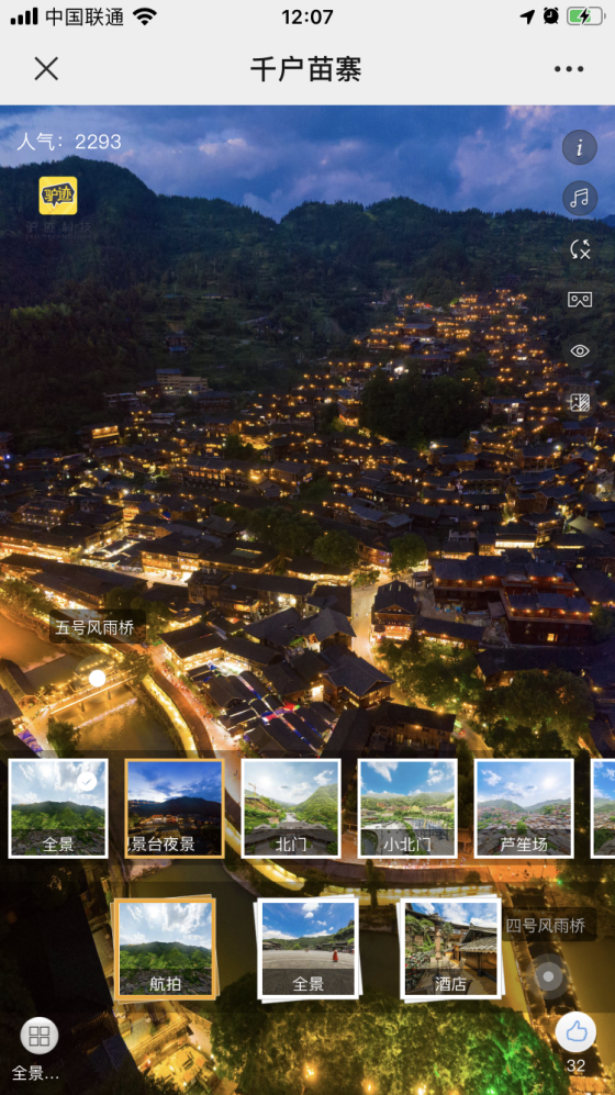 据驴迹科技VR业务运营负责人介绍,驴迹VR通过对千户苗寨进行实地拍摄VR全景,经过素材筛选、细节调整、精修调色等多个步骤后,最终合成720无缝场景,呈现最真实以及极具参考价值的环境。通过VR技术,还可让用户看到景区环境中的各个细节。
