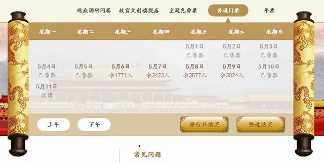 目前,故宫不仅五一假期门票全部售罄,假期后的第一个休息日——5月10日的门票也已售罄。如果没有预约门票,这几天就别往故宫跑了。