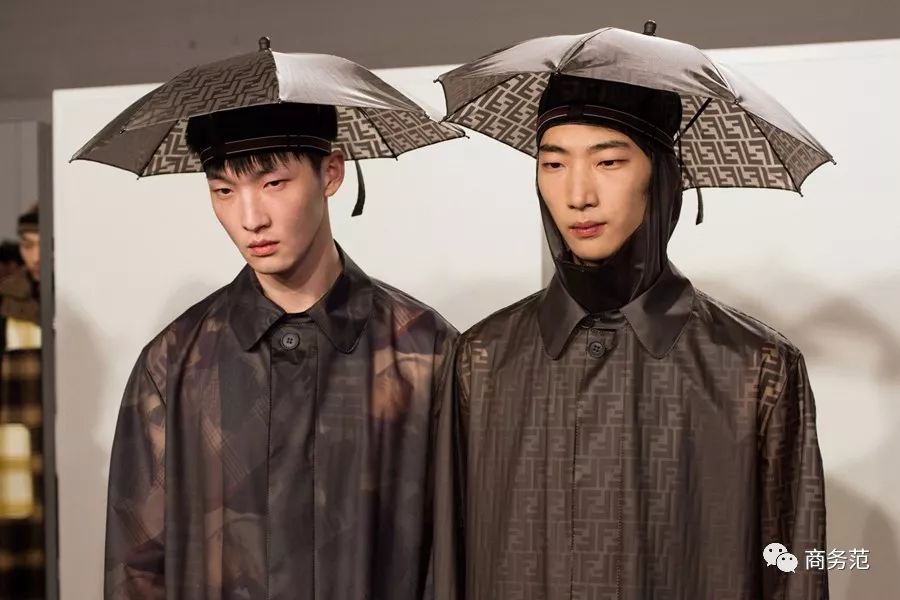 作为老花复兴大军中的一员,Fendi的战略是:面积大。不像Dior只运用在手袋上,Fendi的2018秋冬男装系列,从帽子、衣服到裤子和包包,都铺满了老花。