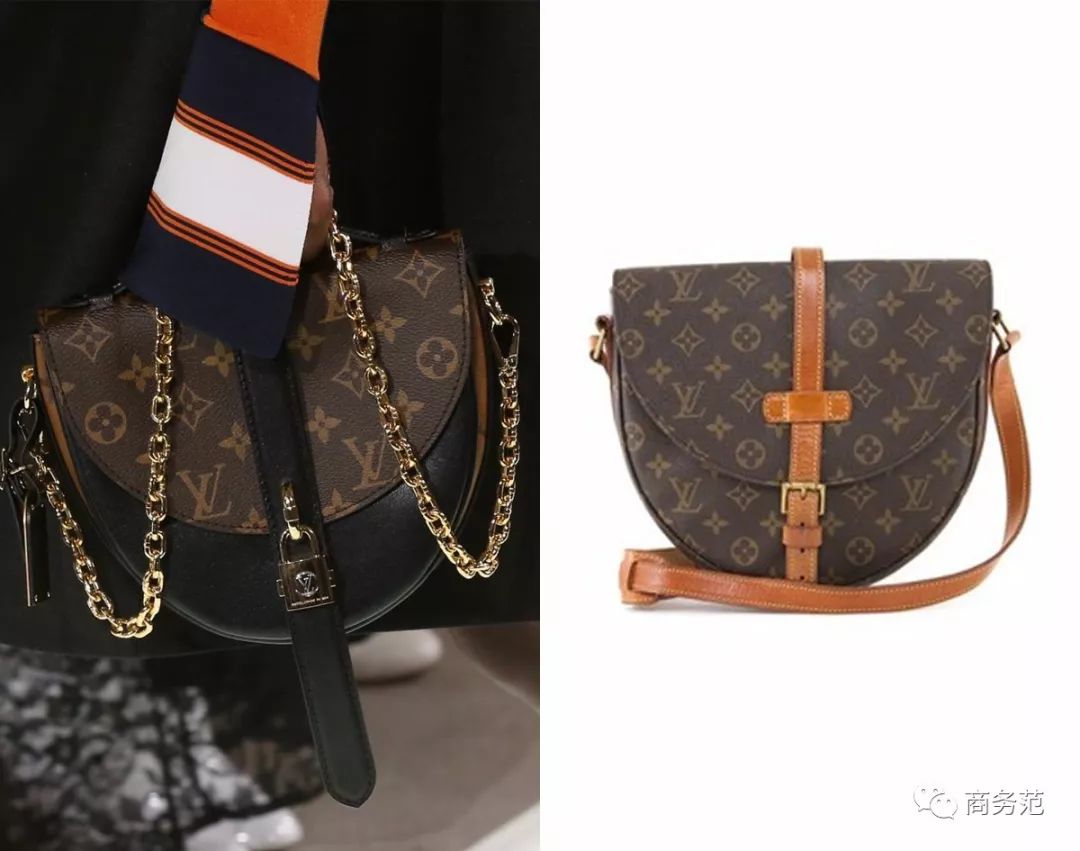 2018新品又出了许多老花包,但范主发现,不少包型也在致敬过去。(左边是秀场新款,右边是几十年前的旧款)