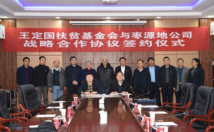 枣源地公司总经理孙晋玉表示,和王定国扶贫基金会签订战略合作协议,基于我们有着共同的理念,为老区人民,为临县人民脱贫致富出份力。孙晋玉还简要介绍了枣源地公司。他说,枣源地公司是集红枣种植、深加工销售,保鲜仓储为一体,依托中国红枣之乡的资源,为临县特色农产品深加工量身打造的一家特色企业。