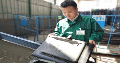 周工所在的郑州格力绿色再生资源有限公司是格力六大再生资源基地之一。除了珠海总部,格力同时建有长沙、郑州、石家庄、芜湖、天津等再生资源基地,多渠道回收电视机、冰箱、洗衣机、空调、电脑等电子电器设备,回收后的设备经过国内外先进的“无害化”固体废弃物拆解技术——“物理分离”等技术处理,形成铜、铁、铝、塑料等可再生资源,形成资源循环利用。