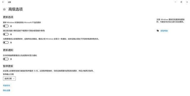 更新中而电脑配置过低和过久的电脑就不建议经常进行小更新了,会出现各种兼容性问题。只要等大版本更新就可以了。在Win10 1903版本微软加入了延时更新功能,Windows设置-更新和安全-高级选项,可以等其他人更新后有没有重大BUG在选择是否升级。