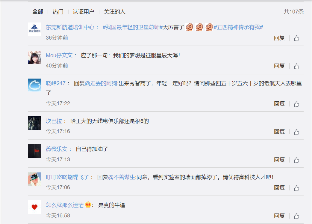 今天是五四青年节,有两个90后冲上了热搜:26岁女工程师获颁“湖北五一劳动奖章”,设计我国首个高铁上盖工程;最年轻的卫星总师,90后哈工大学生韦明川已发射两颗卫星。
