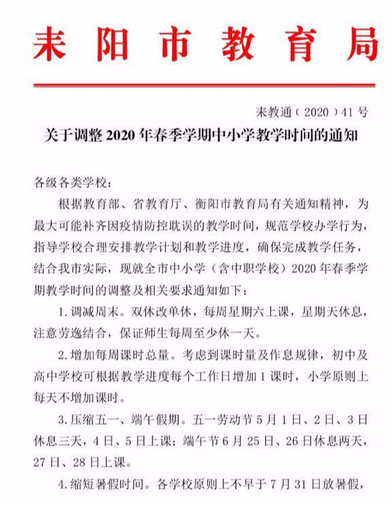 从以上各地区发布的暑假放假情况来看,有些地区相较于往年有一定的延后,其实这也可以理解,但还是有假可放,像耒阳市教育局4月14日发布通知,其中第4点就提到缩短暑假时间,原则上不得早于7月31日放暑假。