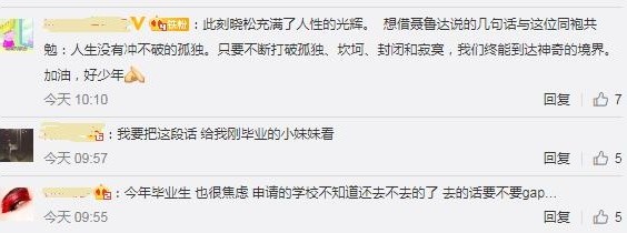 不愧是清华毕业的大才子啊,回应陌生网友都这样的用心至极、情真意切、正能量满满。用网友的话说,“此刻的晓松充满了人性的光辉”,还有网友表示“我要把这段话给我刚毕业的小妹妹看”。