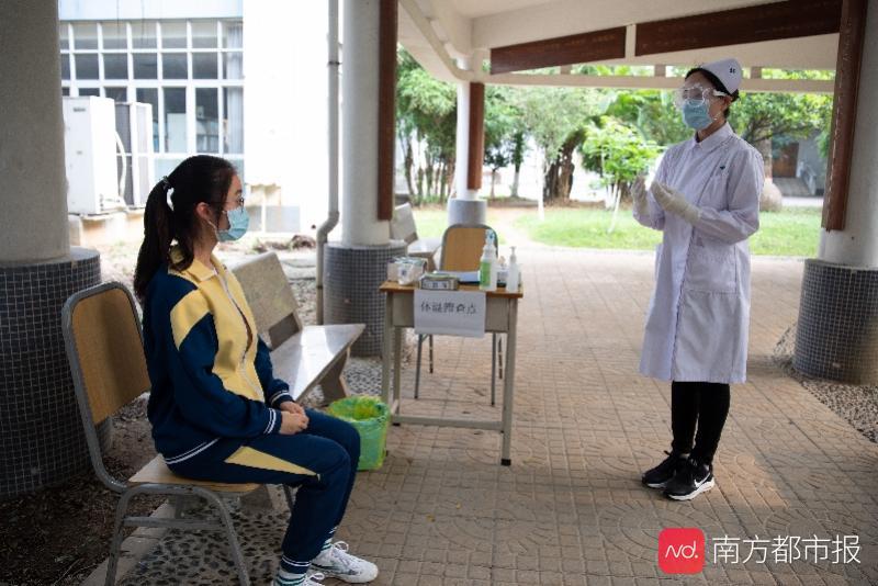 黄埔区玉岩中学演练开学,模拟对疑似发热学生进行情况调查。