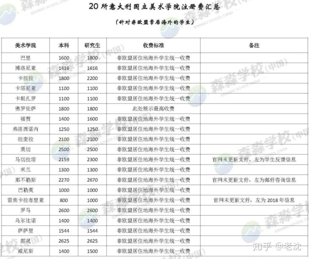 大部分美院会给“非欧盟国家公民,且常住地也不在意大利”的学生设定一个统一的收费标准,表格里我标记了“非欧盟居住地海外学生统一收费”;