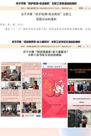 中国人民银行青岛市中心支行女职委结合工作实际,围绕防疫维权、读书征文、树立榜样、抗疫宣传、慰问祝福五个方面,先后组织开展了“防护疫情•依法维权”女职工防疫保护和特殊权益为线上答题、“阅读强素质•奋斗建新功”主题读书征文、参与市总工会“女职工建功立业标兵”评选和“三八节”先进事迹视频展示、线上刊载《我身边的抗“疫”故事》30余篇以及“致女职工的一封信”等特色系列活动,以不一样的方式关爱女职工,助力疫情防控与女工工作统筹推进。