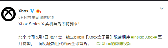 Xbox官微宣布,5月7日的直播,国内玩家可从B站观看