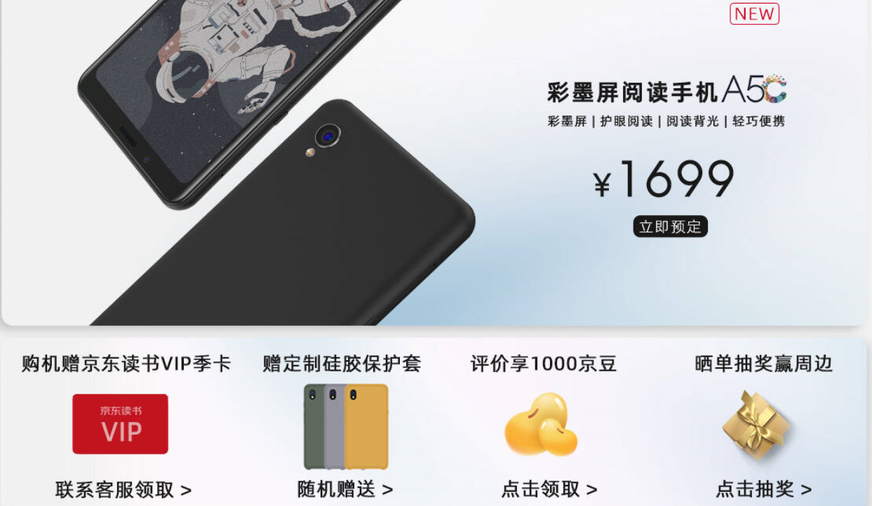 目前海信彩墨屏阅读手机A5C在京东商城已经开启预售,在首销期间购买A5C的用户,商家还准备了丰富的福利,包括读书会员季卡、官方焕彩保护壳以及晒单京豆等。所有福利都是限时限量,感兴趣的朋友可不要错过了。