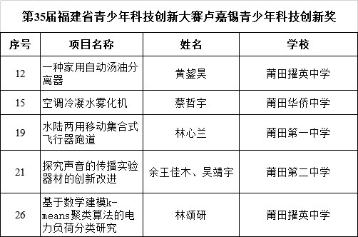 来源:福建省青少年科技创新大赛活动办公室、莆田新闻