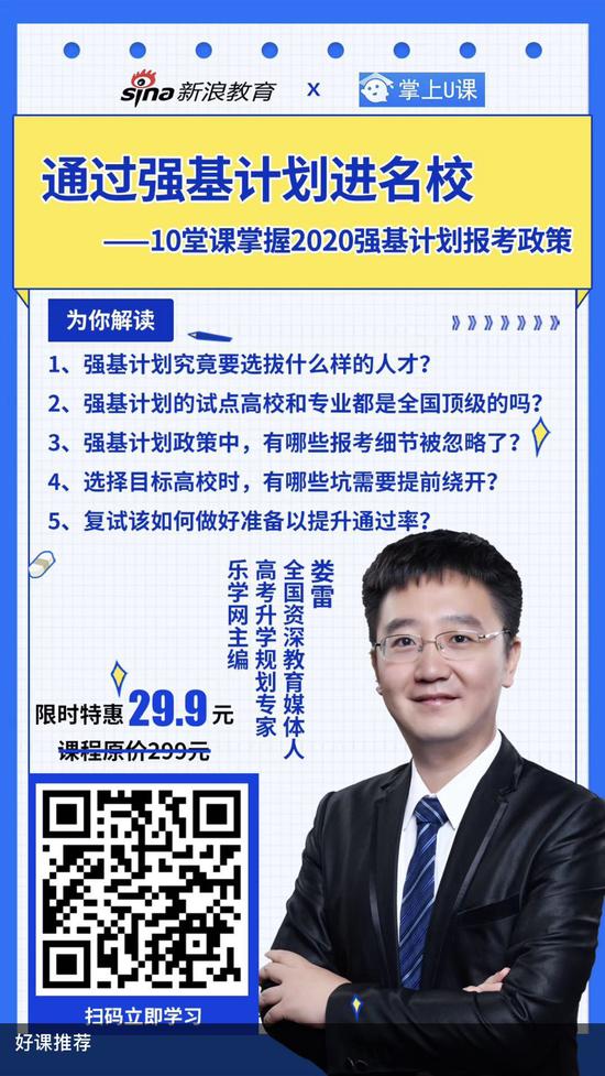 新浪教育讯 五一节后第一天,强基计划试点高校纷纷开始公布2020年强基计划招生简章。高考成绩优异或者相关学科领域具有突出才能和表现的两类考生均可申请。以下为已公布的高校强基计划招生简章。