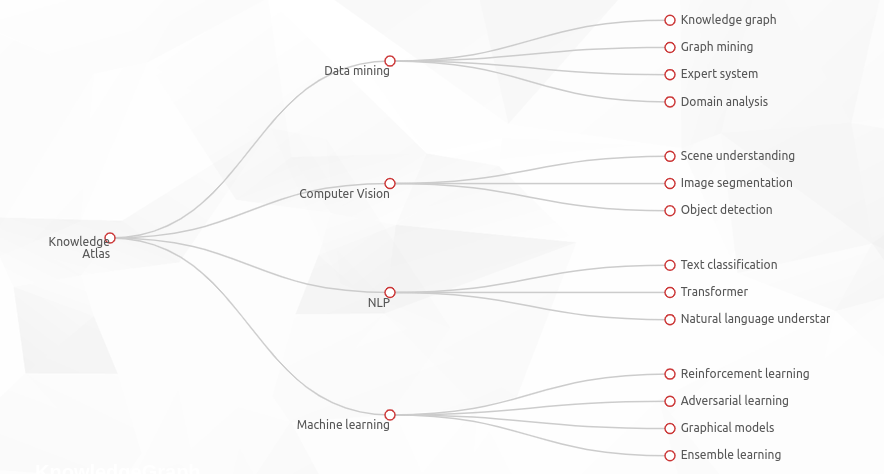 当然,可视化离不开对信息和数据的挖掘。一位学生通过整合 AI 领域相关的知识:论文,专家,概念。对每一个领域展示该领域 top 学者以及论文。通过用户交互增加知识获取和交流的趣味性,用户可以根据个人知识帮助完善知识图谱。构建领域概念层次树,以概念作为桥接点构成知识图谱,帮助访问者了解领域知识体系层次结构。最终完成了疫情知识地图――knowledgeatlas。