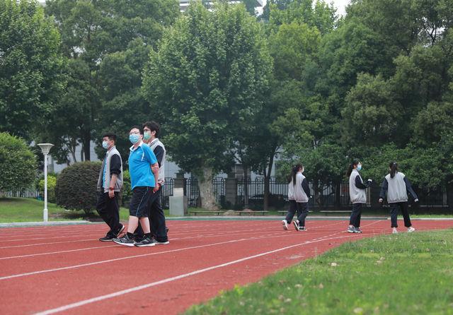 5月6日,武汉第十七中学,午饭后,学生们在操场散步。有学生说,开学后,对接下来的生活很期待。~口区教育局工作人员介绍,随着防疫复学工作的逐步完善,接下来其他年级段的复课可以借鉴高三复课的经验。中青报・中青网见习记者 鲁冲/摄