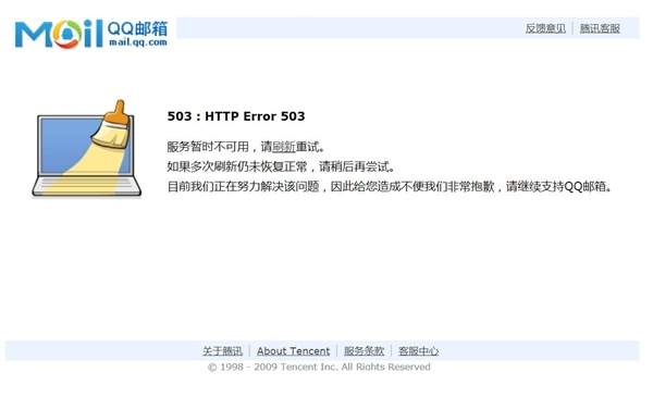 页面提醒:如果多次刷新仍未恢复正常,请稍候再试,目前我们正在努力解决该问题,因此造成不便我们非常抱歉,请继续支持QQ邮箱。