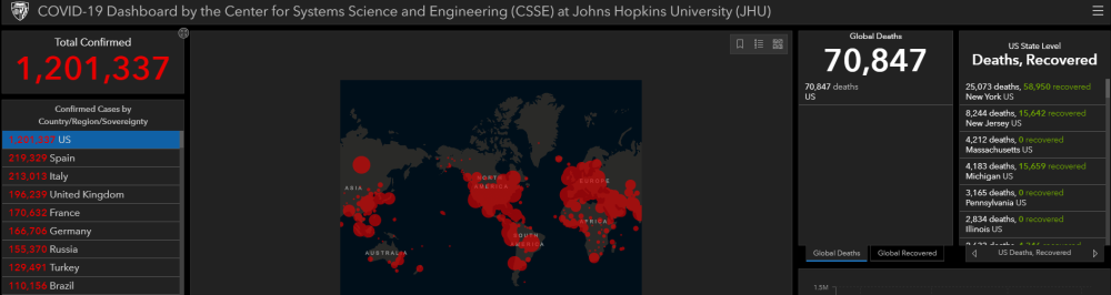 (观察者网讯)据美国约翰斯・霍普金斯大学截至北京时间5月6日5时32分的新冠疫情最新统计数据显示,美国累计新冠确诊病例1201337例,24小时内新增22431例。