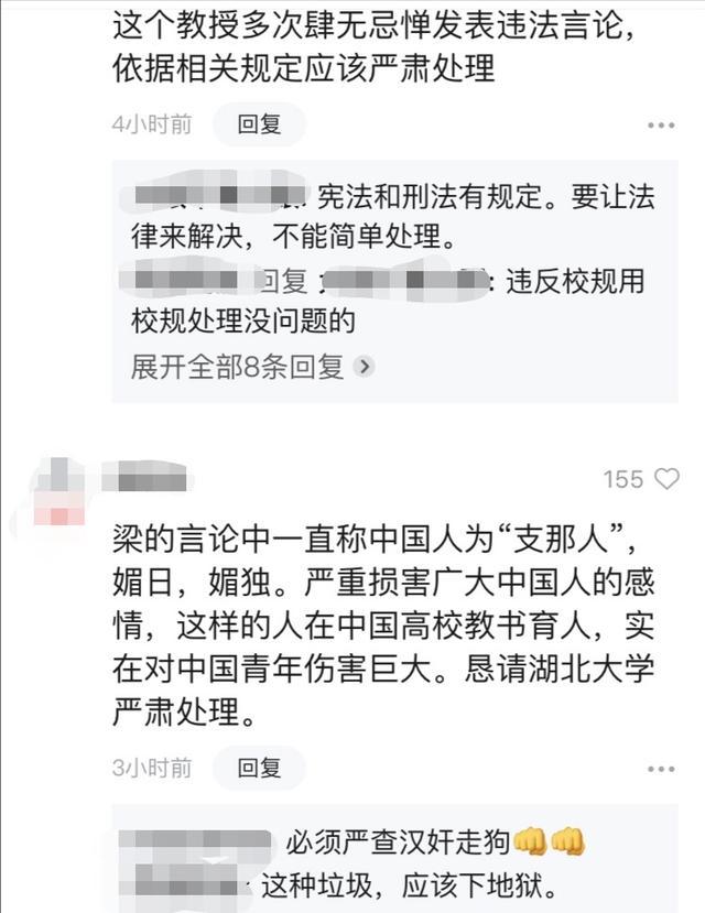 近日,有网友曝出湖北大学教师梁艳萍在个人平台发布不当言论,引起大家的重视。4月26日晚湖北大学官方微博发布表示,关于网友反映的有关湖北大学文学院教师梁艳萍在个人平台发表不正当言论一事,学校将高度重视,已经成立调查组,正在进行深入调查,将视调查情况依纪依规进行严肃处理。