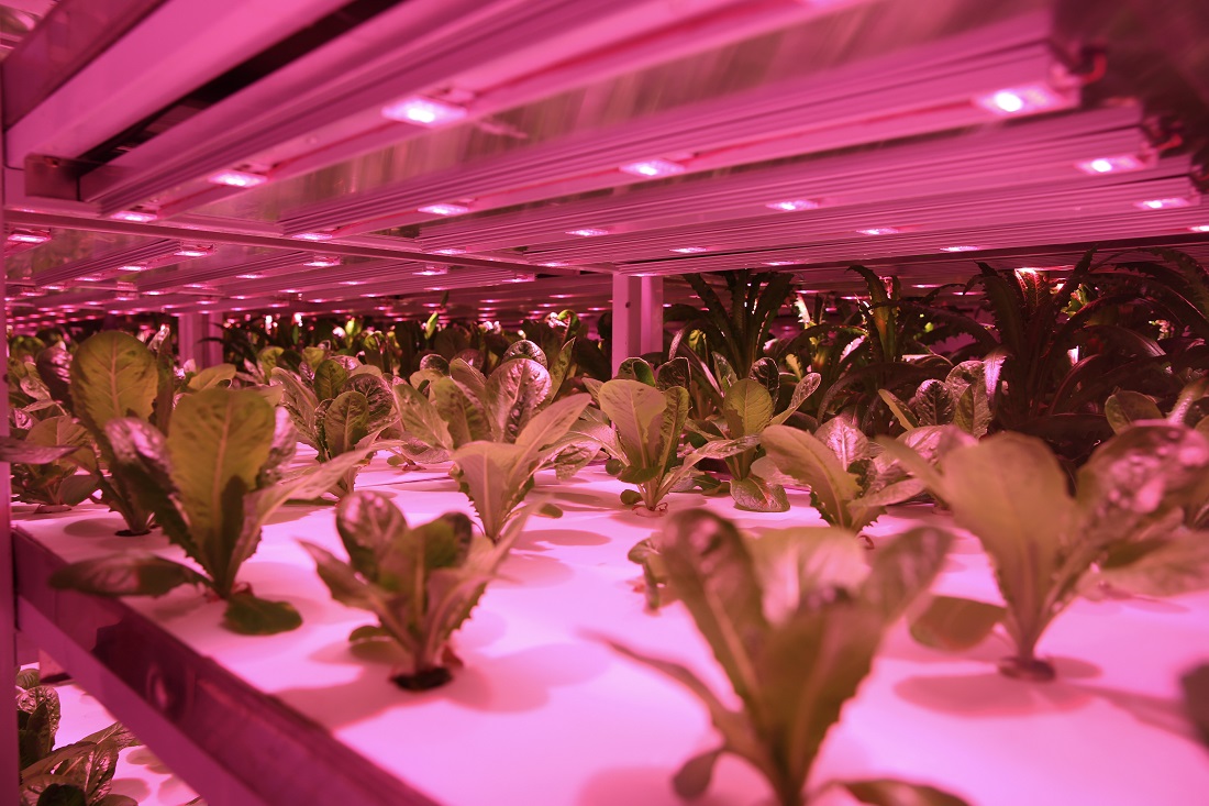 “蔬菜工厂”里茁壮生长的孔雀菜。骆鑫 摄